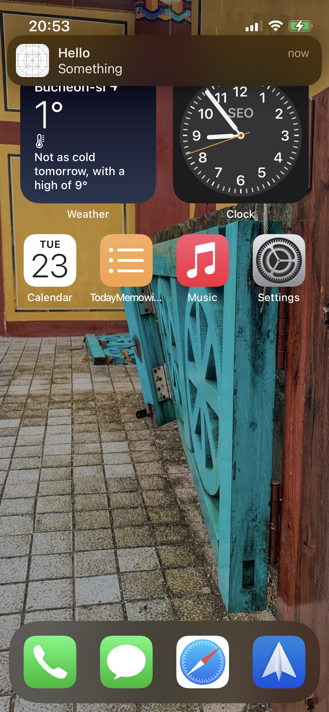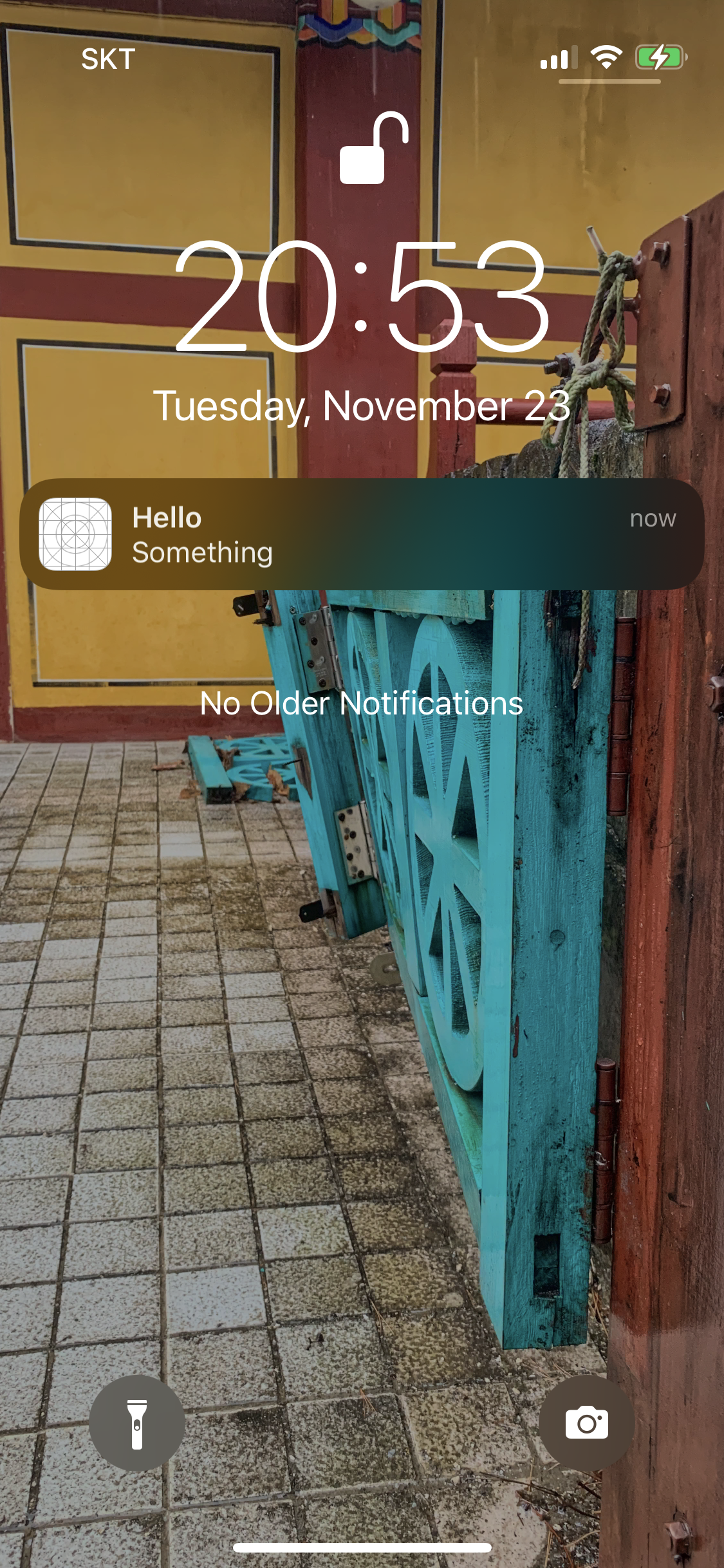 앱을 실행하고 Notification을 예약해 보면 기본 사운드와 함께 Notification이 표시된다.