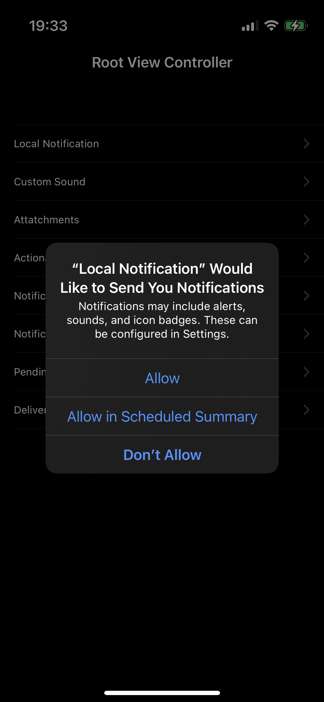 Allow를 선택하면 이제부터는 Notification을 예약하고 사용할 수 있다.