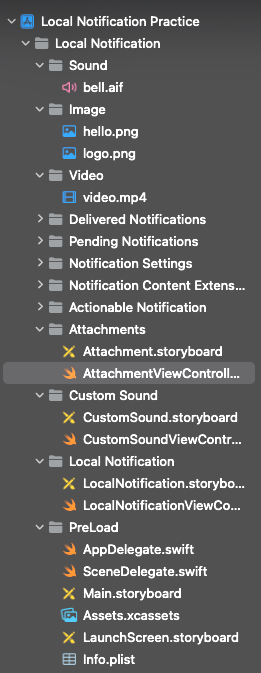 지금까지의 과정은 Local Notification을 처리하기 위한 최소한의 코드이다.