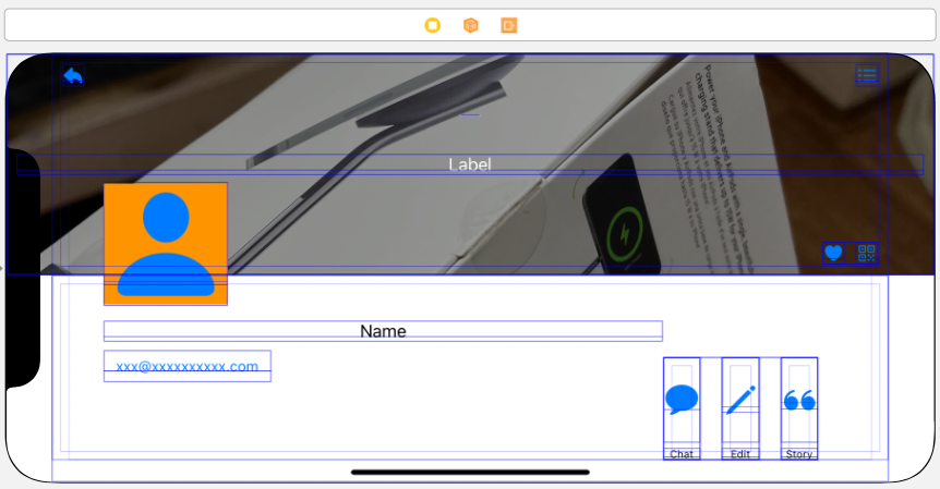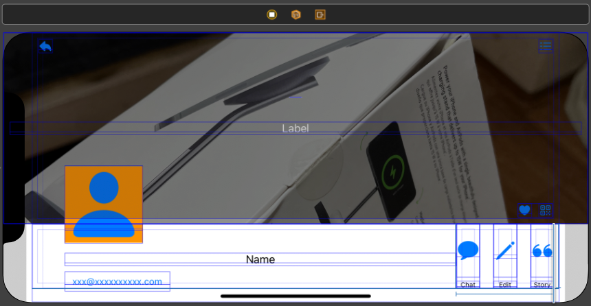 • 상단 Container의 버튼은 프로필 사진에 가려지게 된다.