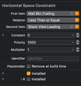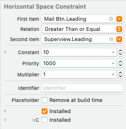 • Height가 Compact인 경우 오른쪽 버튼의 Leading을 기준으로 새롭게 Trailing 제약을 추가한다.