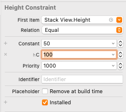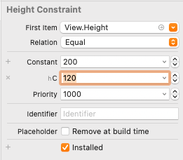 • Height가 Compact인 경우 Trailing 제약을 추가하고, 높이를 변경한다.