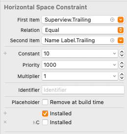 Label과 같은 위치에서 시작할 수 있도록 새로운 Leading 제약을 추가한다.