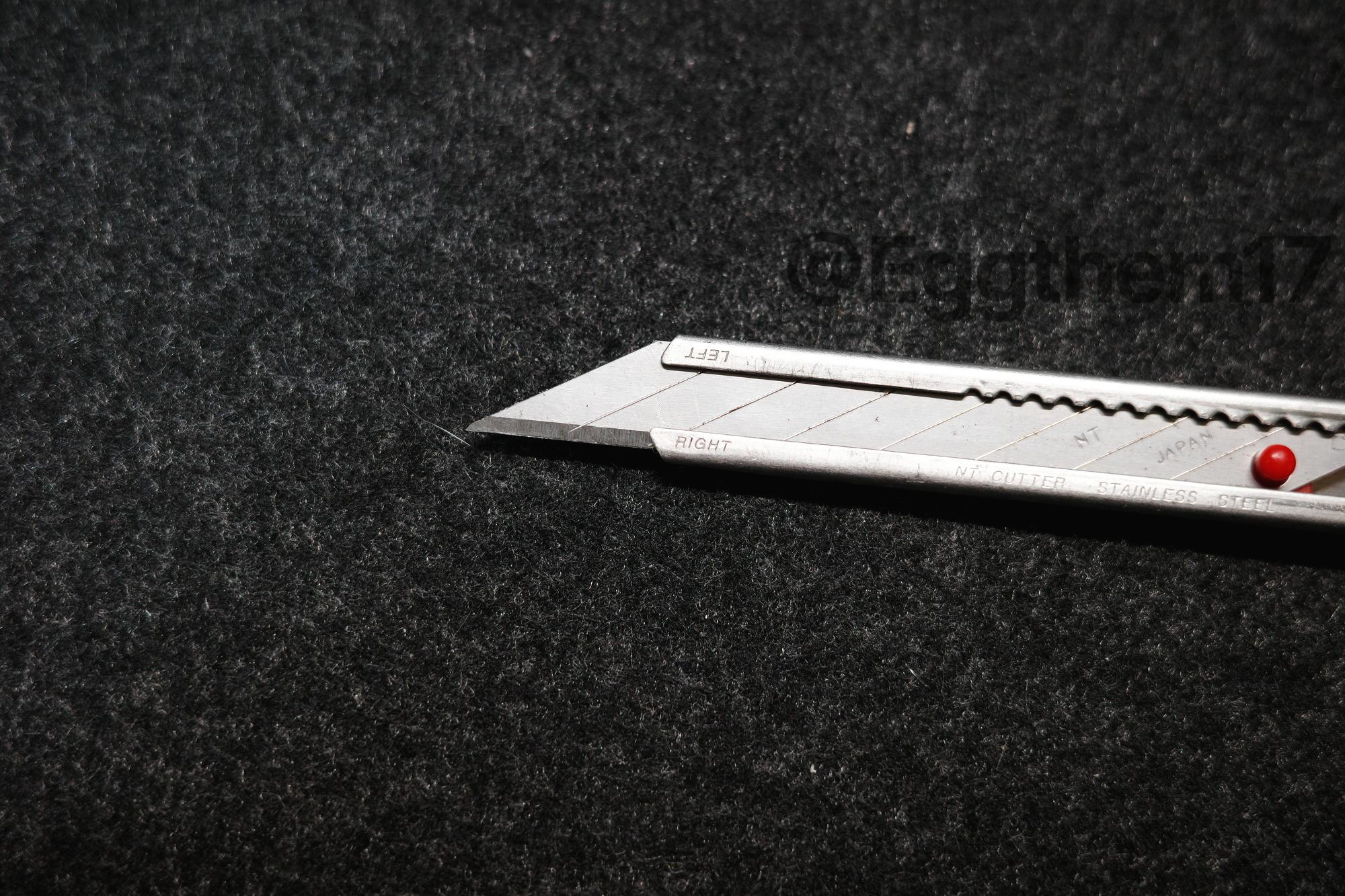 사용하던 칼은 위처럼 30도 날을 사용하는 얊은 커터칼이었다.