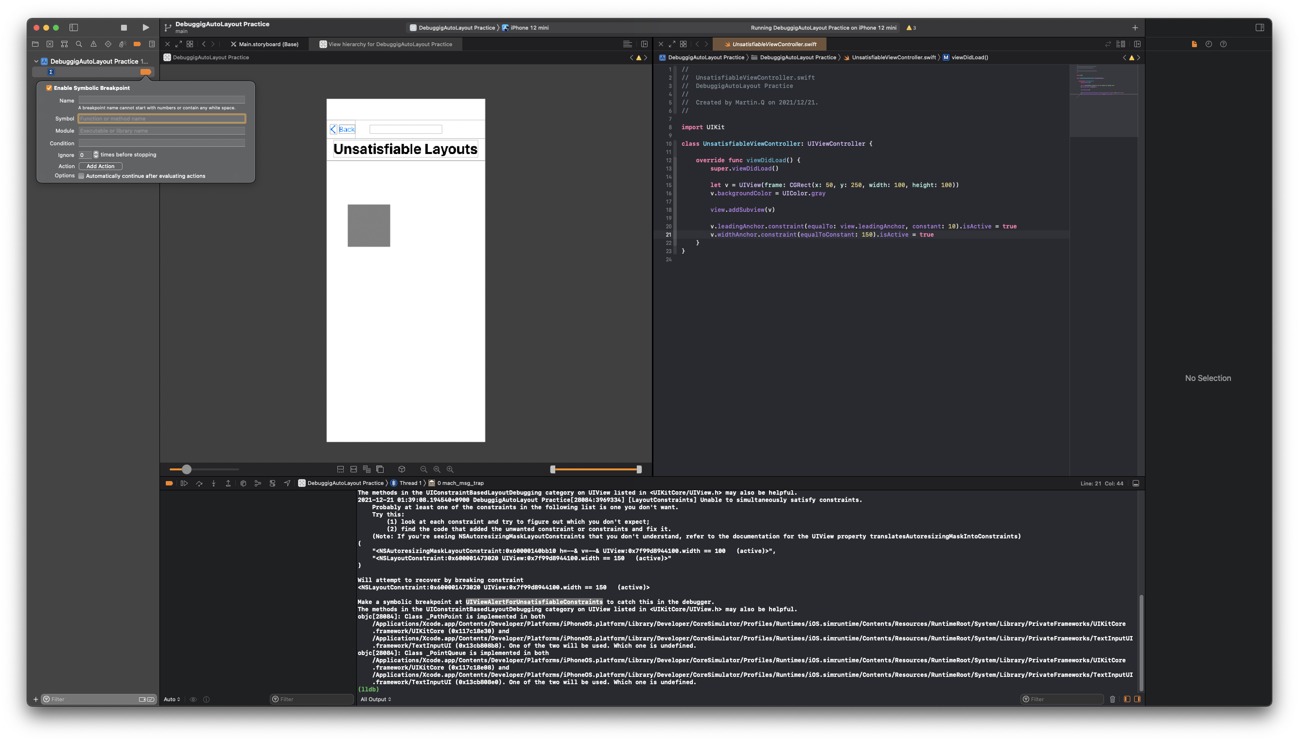 Unsatisfiable Layout Scene은 코드로 회색의 View를 생성하도록 대있다.