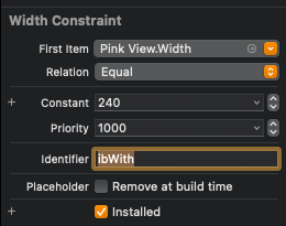 지금은 Leading 제약을 코드를 사용해 추가하는데, 해당 제약의 Identifier를 codeLaeding으로 설정한다.