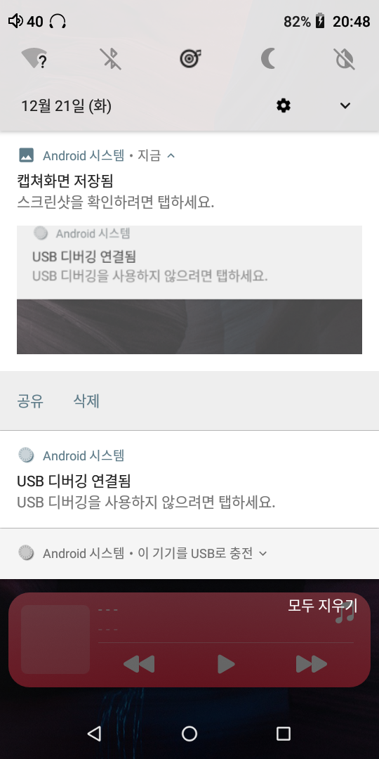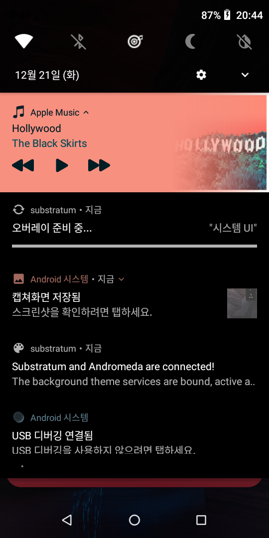 성공적으로 시스템 UI의 색이 흰색에서 검은색으로, 혹은 선택에 따라 짙은 회색으로 변경된 걸 확인할 수 있다.