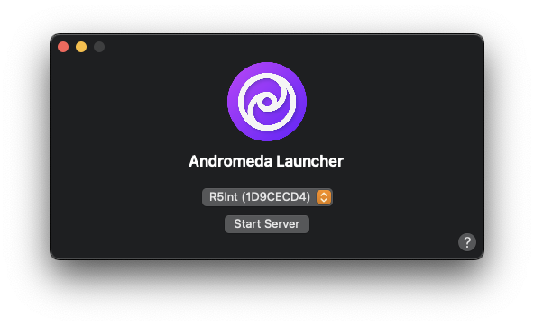 andromeda를 실행한 상태에서 PC의 andromeda launcer를 실행해 start server를 선택하면