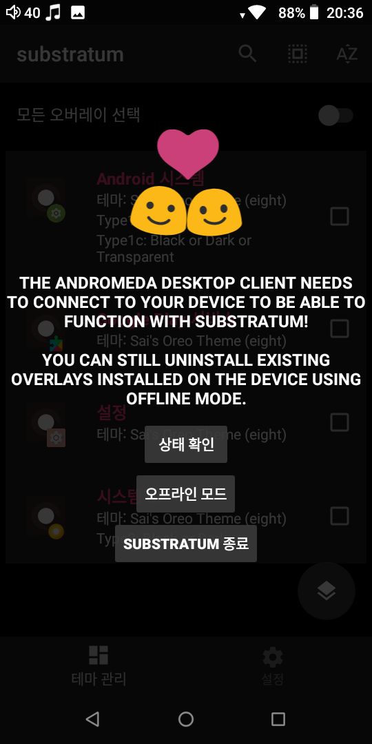 substratum을 실행하면 andromeda의 구동을 먼저 요구한다.