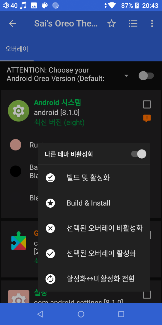 해당 테마는 substratum의 showcase에서나 playstore에서 검색해 다운로드할 수 있다.