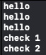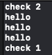이후 3초 지연된 check 1이 이어서 출력된다.
