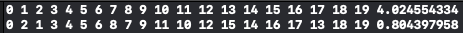 똑같이 0부터 19까지의 값을 출력하고, 완료되면 작업에 소요된 시간을 출력하도록 구현했다.