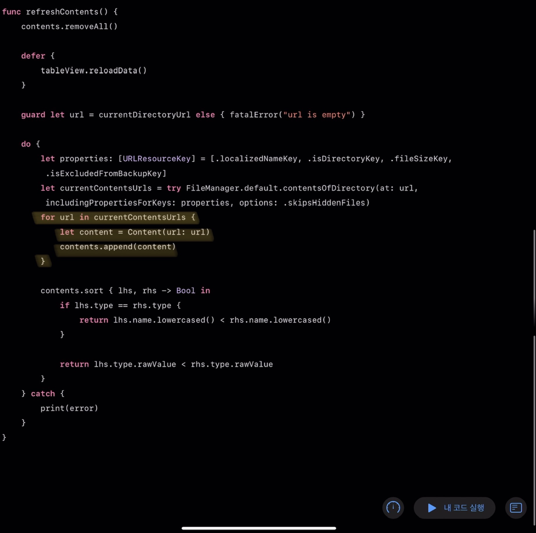 defer문을 사용해 refreshContents 메서드가 실행 완료 되면 tableView를 새로고침 하도록 한다.