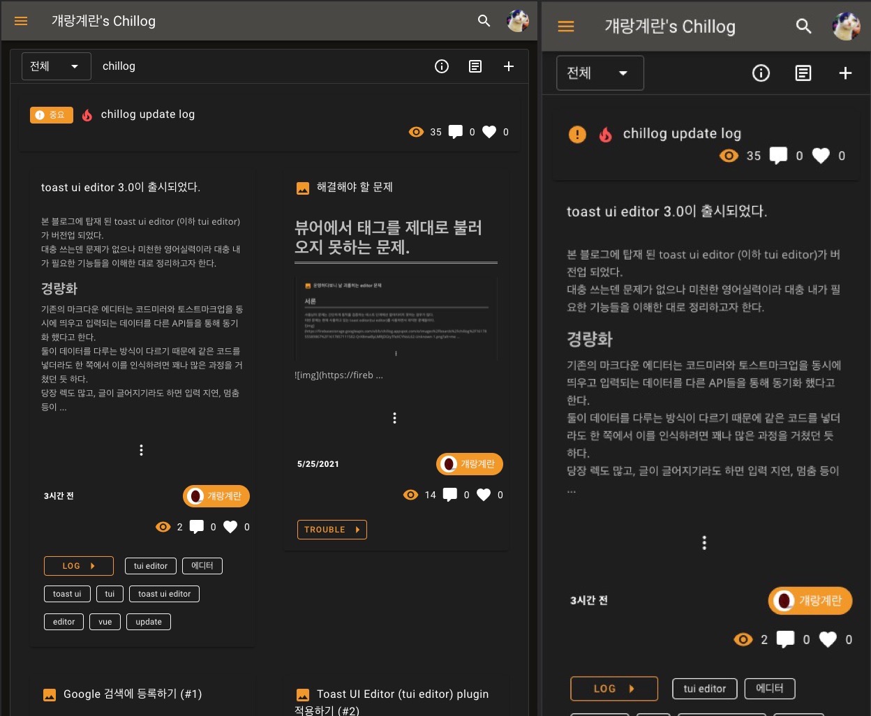 따라서 해당 글들은 굳이 분할해서 보여주는 대신 현행대로 큼지막하게 유지하는 것으로 택했다.