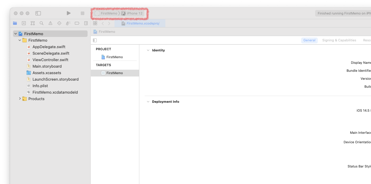 Xcode 화면에서 좌측 상단의 해당 부분을 선택하면