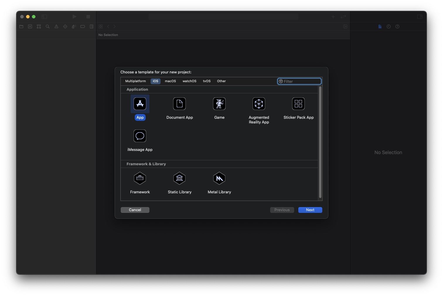 Xcode 12 이상에선 template 선택 시 iOS의 App을 선택해 주면 된다.