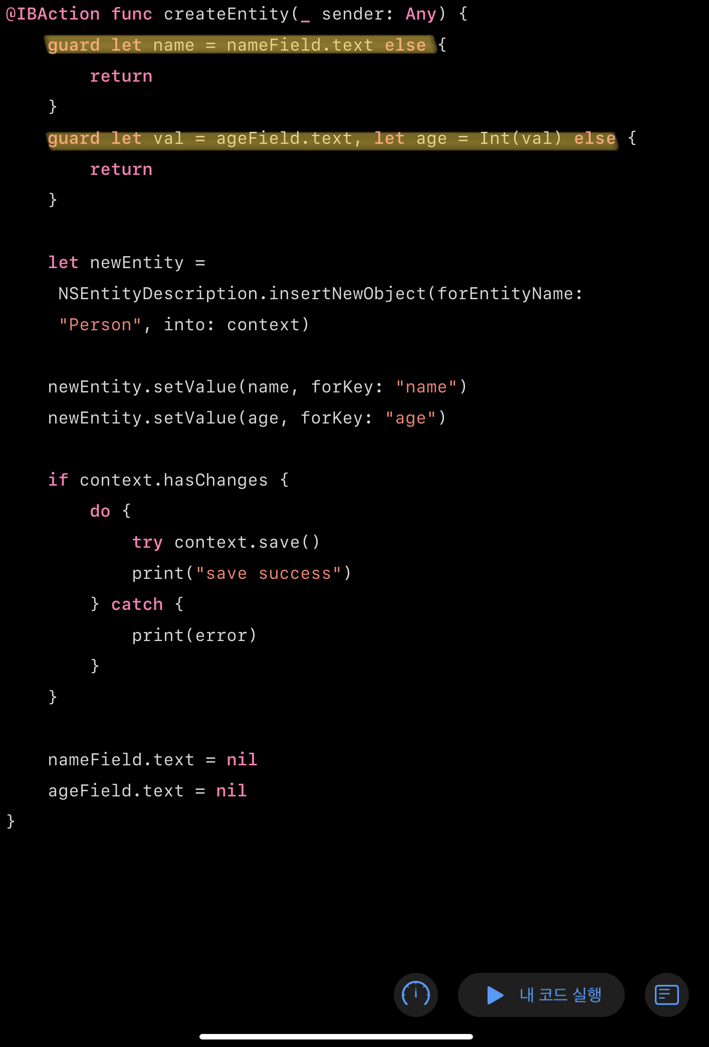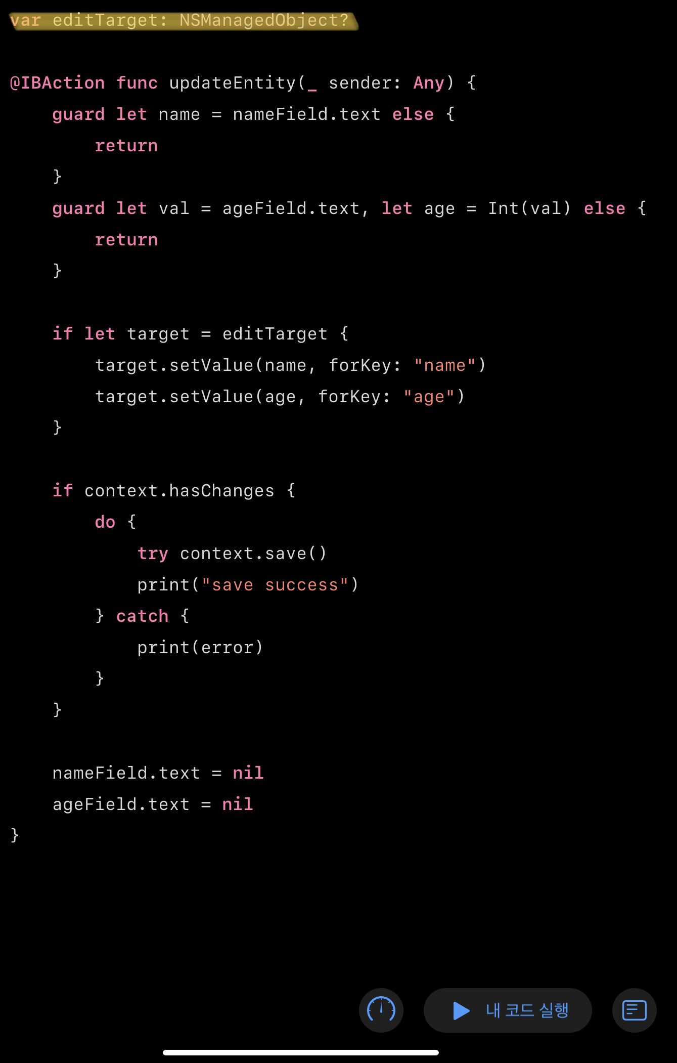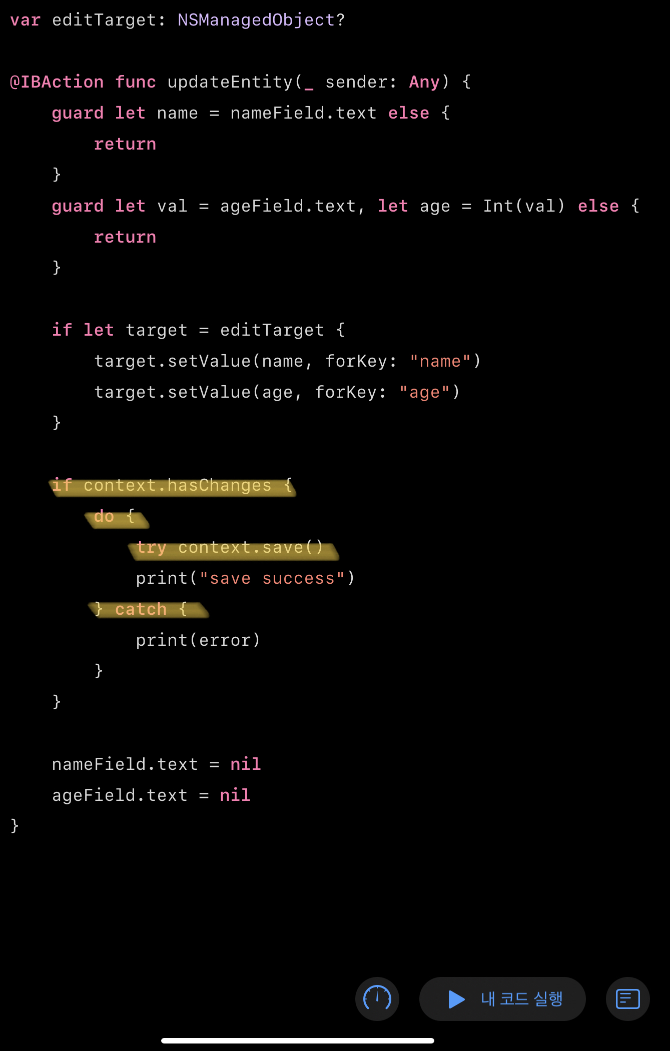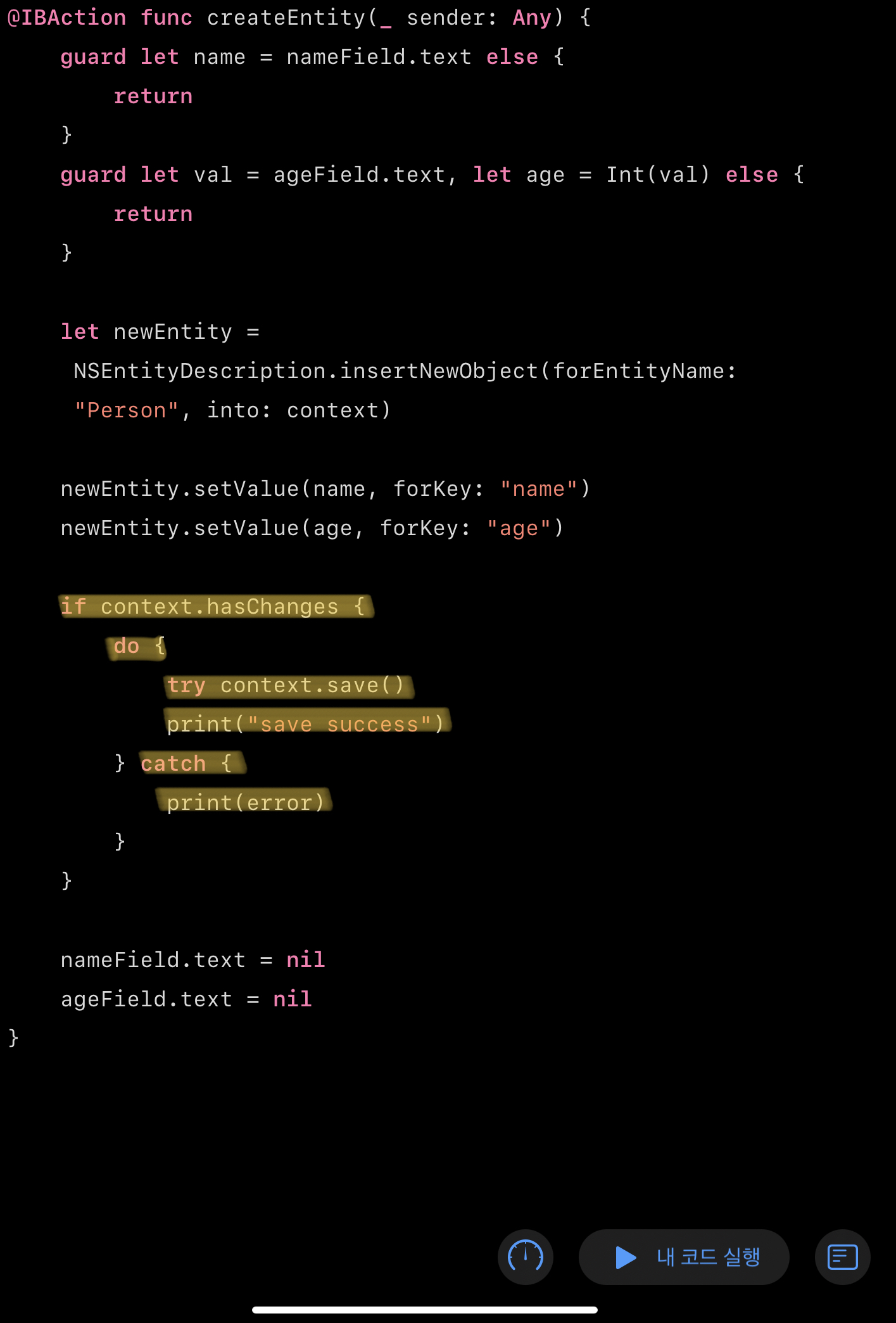 save 메서드를 사용해 Core Data에 실제로 저장한다.