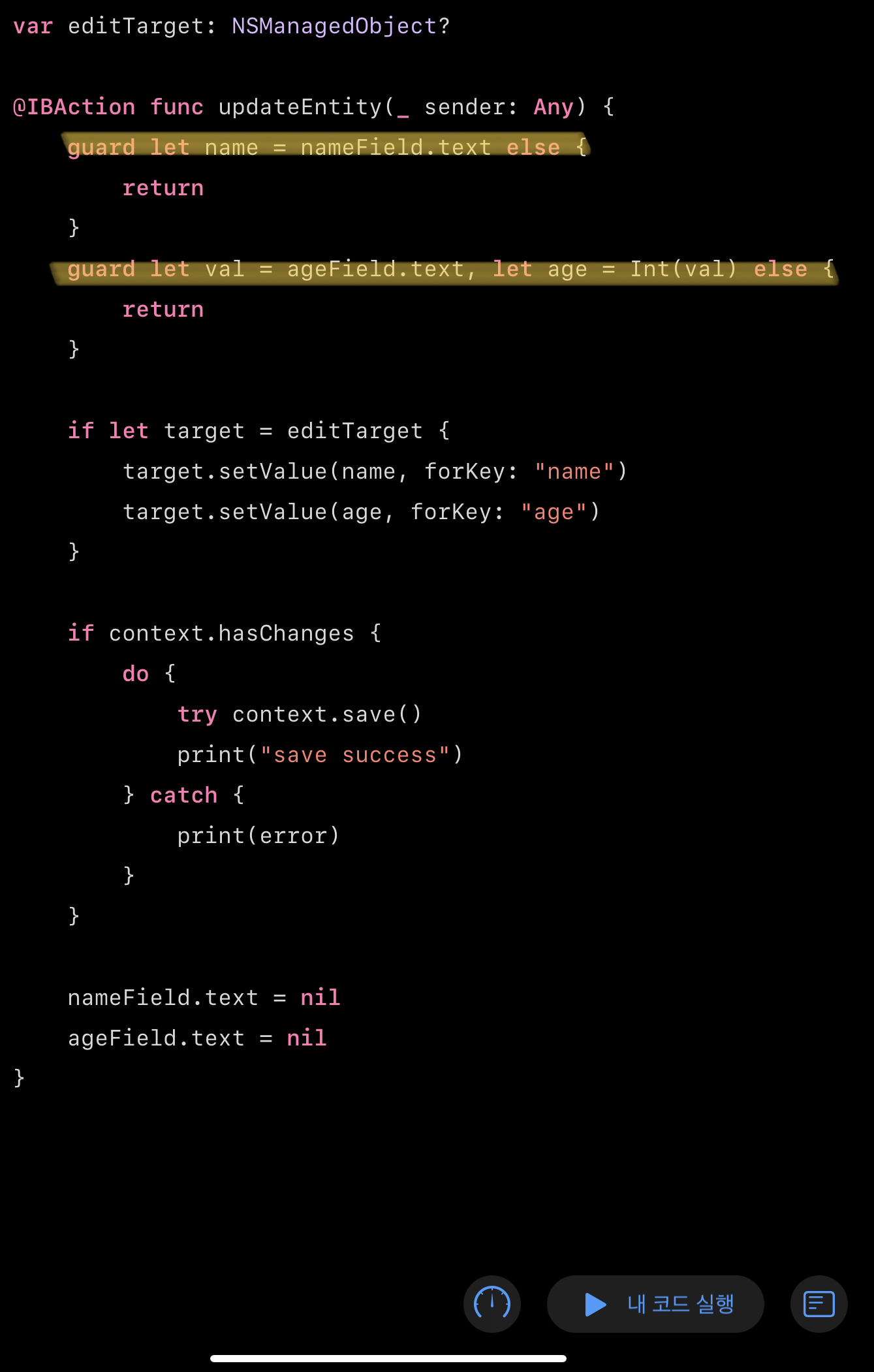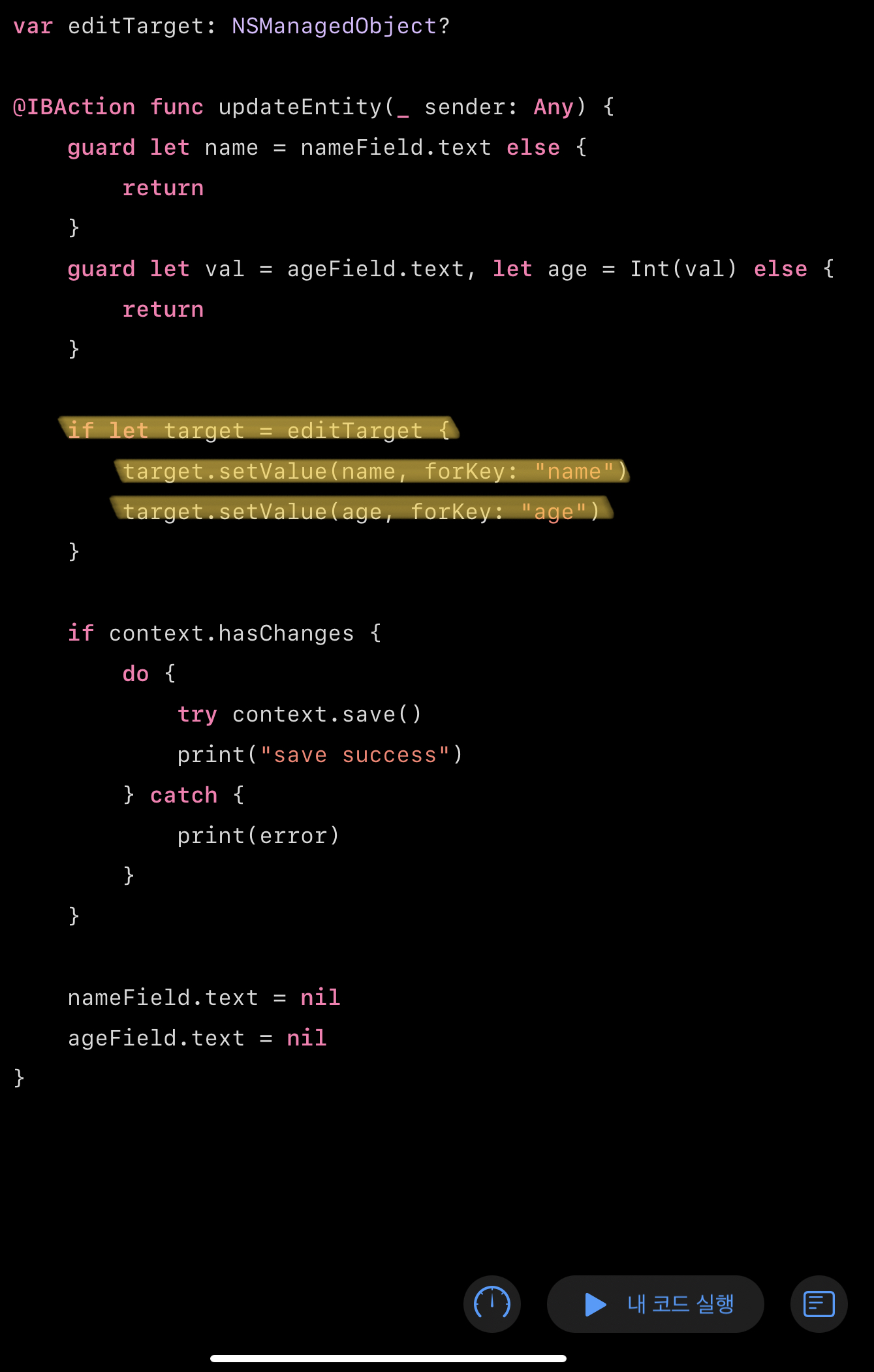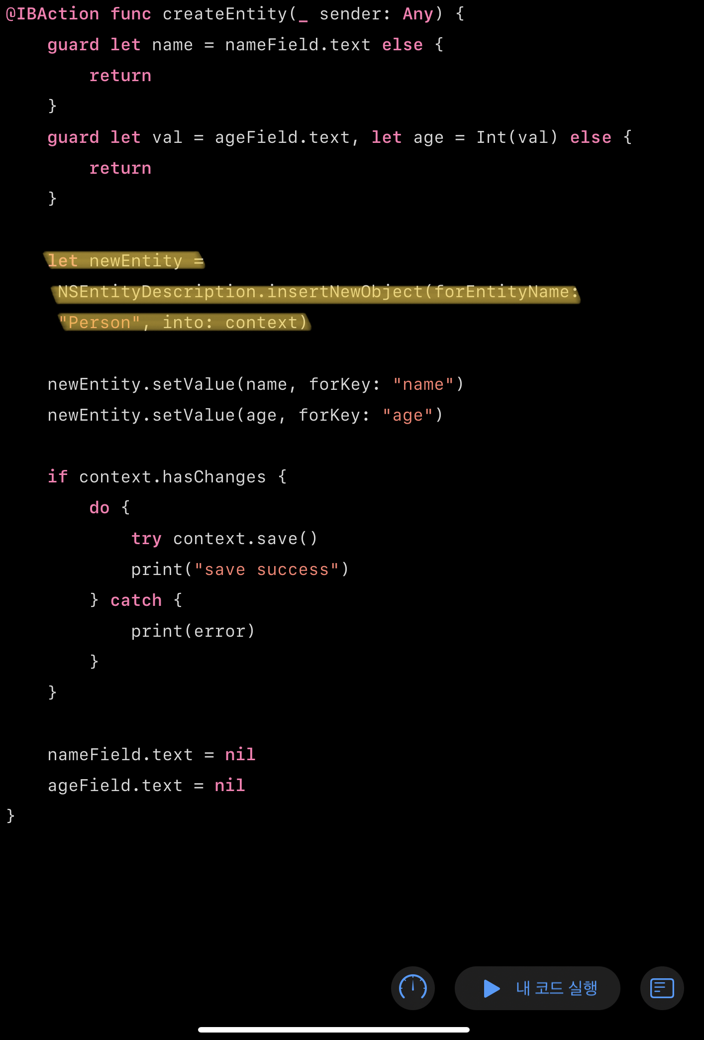 save 메서드를 사용해 Core Data에 실제로 저장한다.