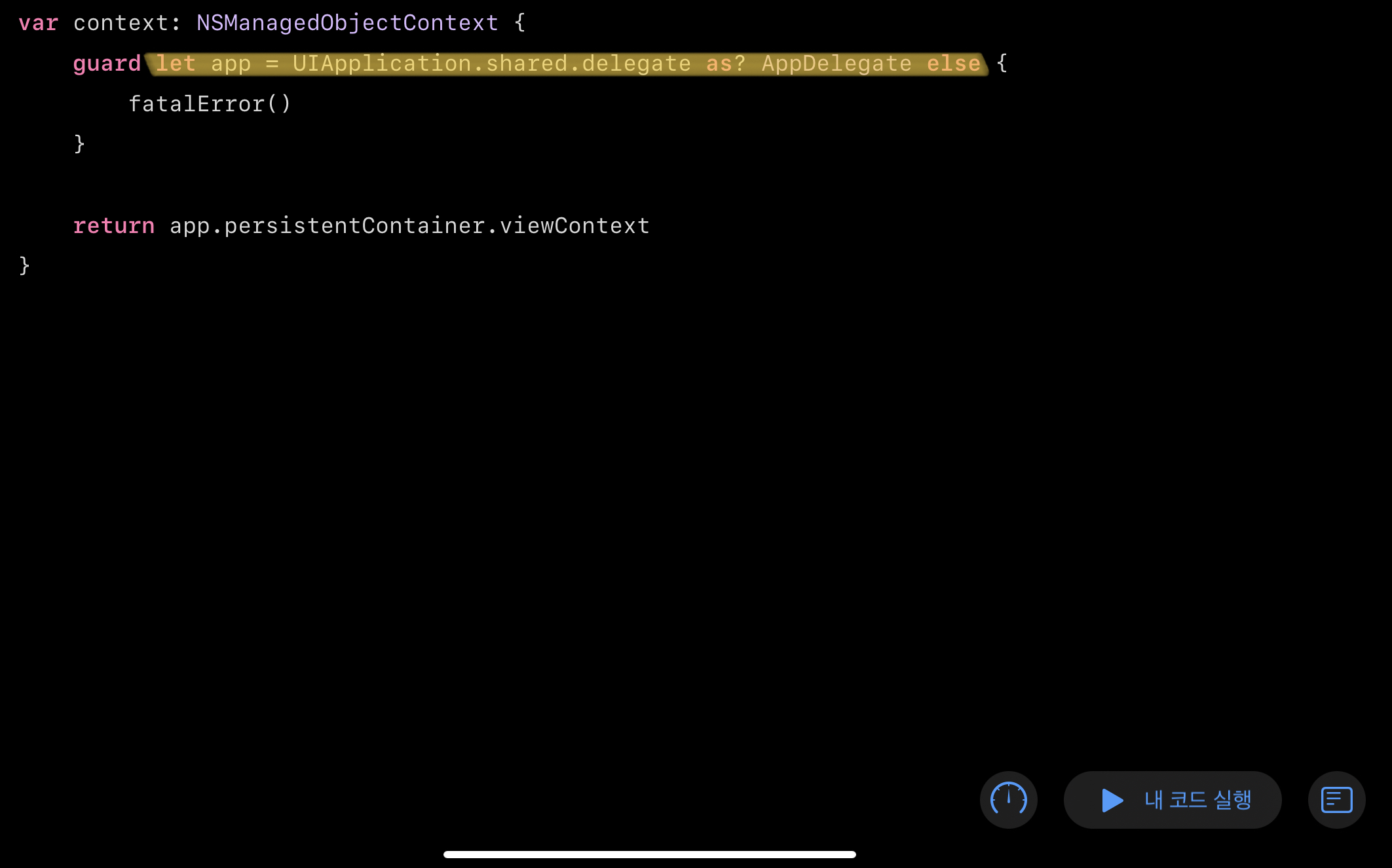 이후 NSManagedObjectContext를 사용해 Context 속성을 선언할 수 있도록 한다.