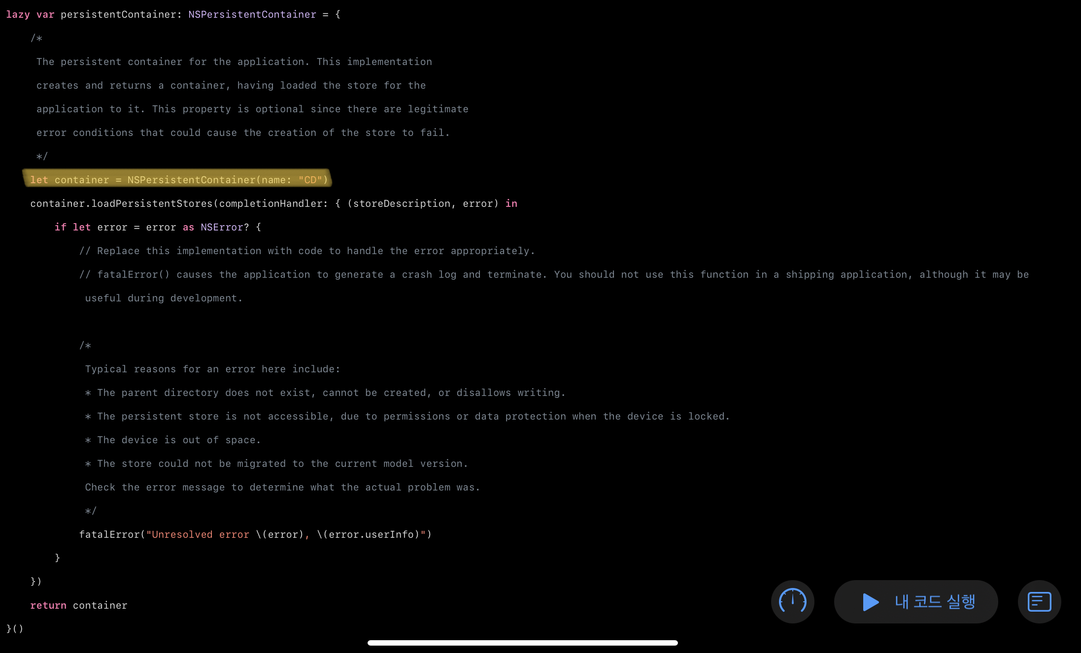 NSPersistentContainer(name:)에 전달된 이름이 Core Data의 이름이 된다.