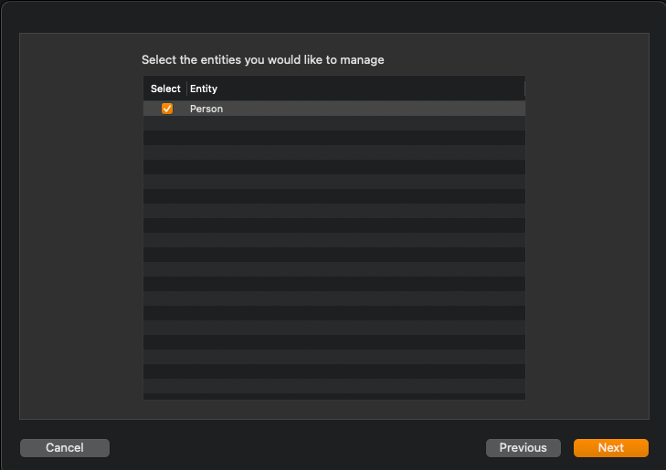 마지막 사진 같이 PersonEntity+CoreDataClass 파일과 PersonEntity+CoreDataProperties 파일 두개가 생성된다.