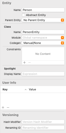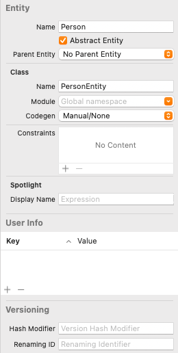 앞서 생성한 Person Entity의 Attribute를 상속 받을 수 있도록 Parent Entity로 Person을 지정한다.