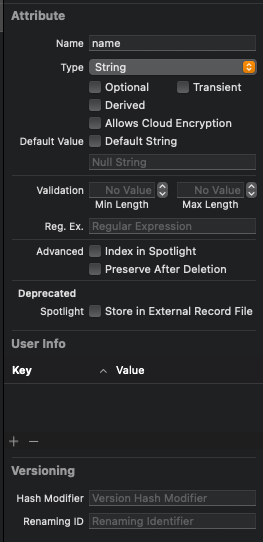 필수 Attribute가 될 수 있도록 Optional 속성은 해제한다.