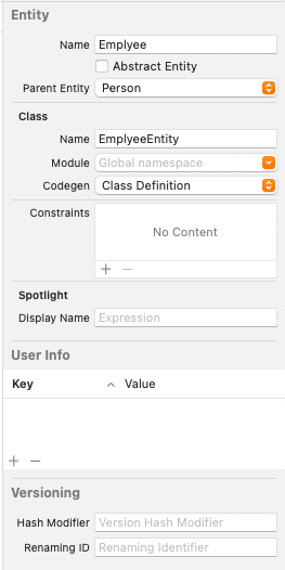 앞서 생성한 Person Entity의 Attribute를 상속 받을 수 있도록 Parent Entity로 Person을 지정한다.