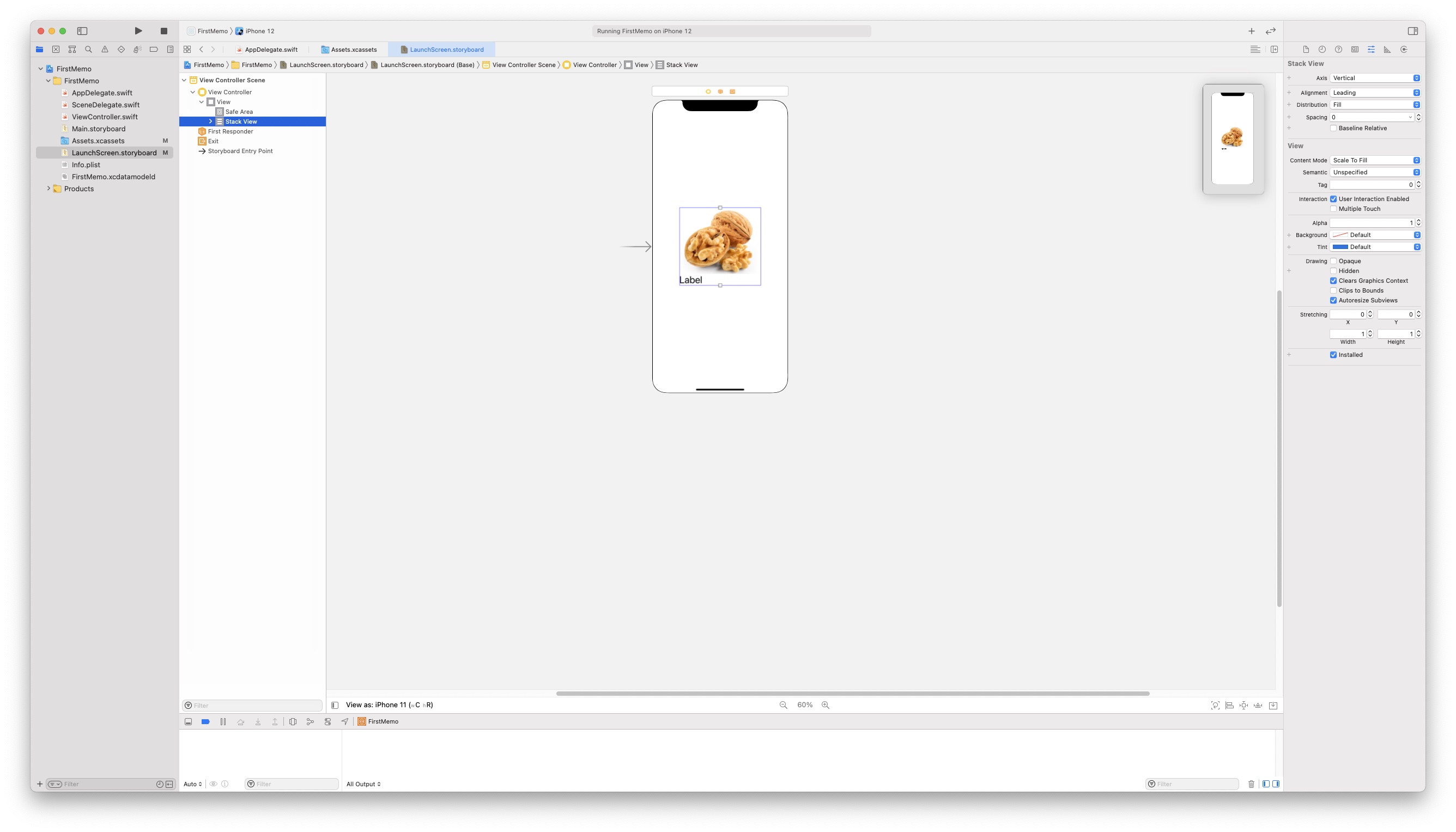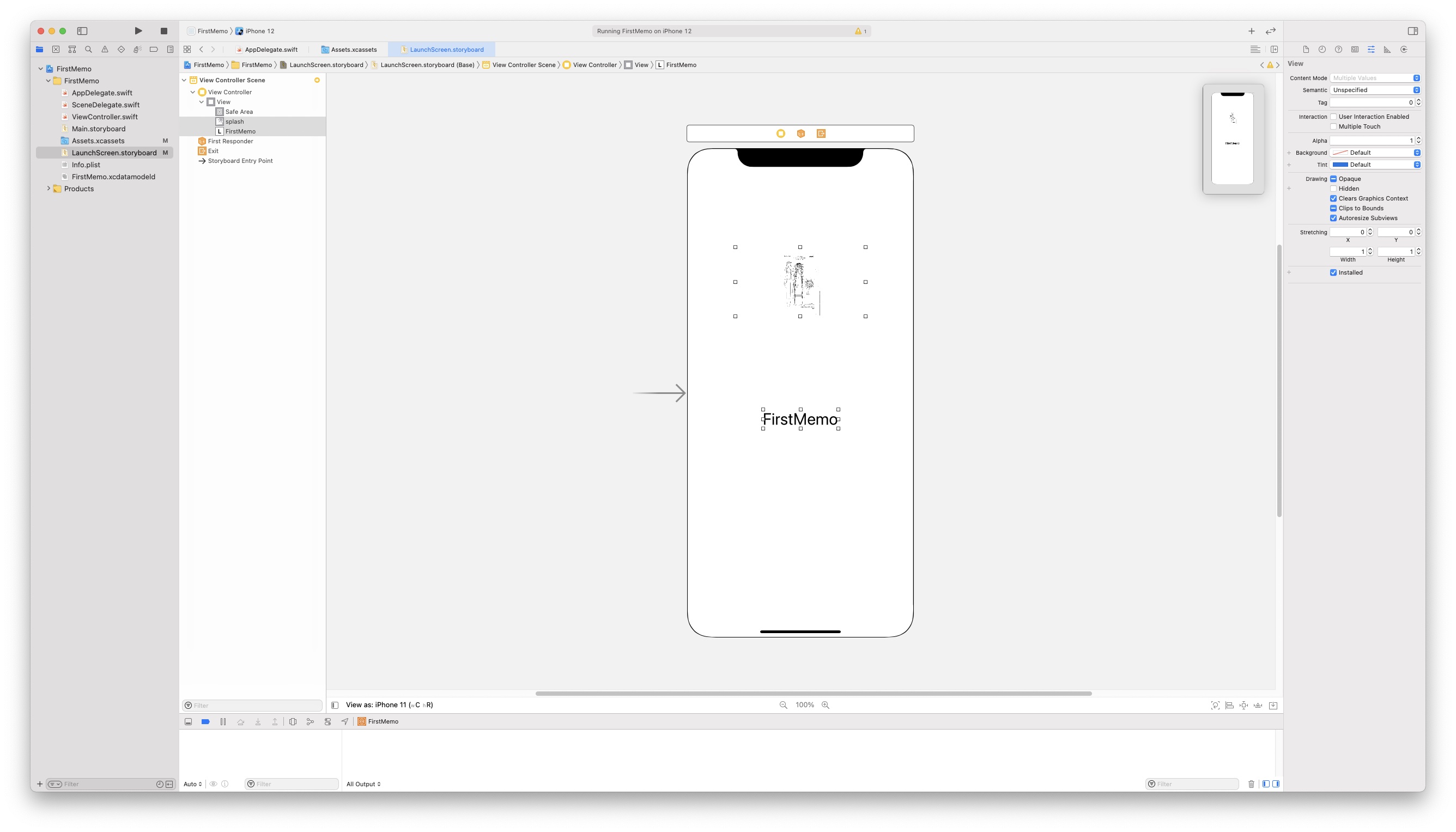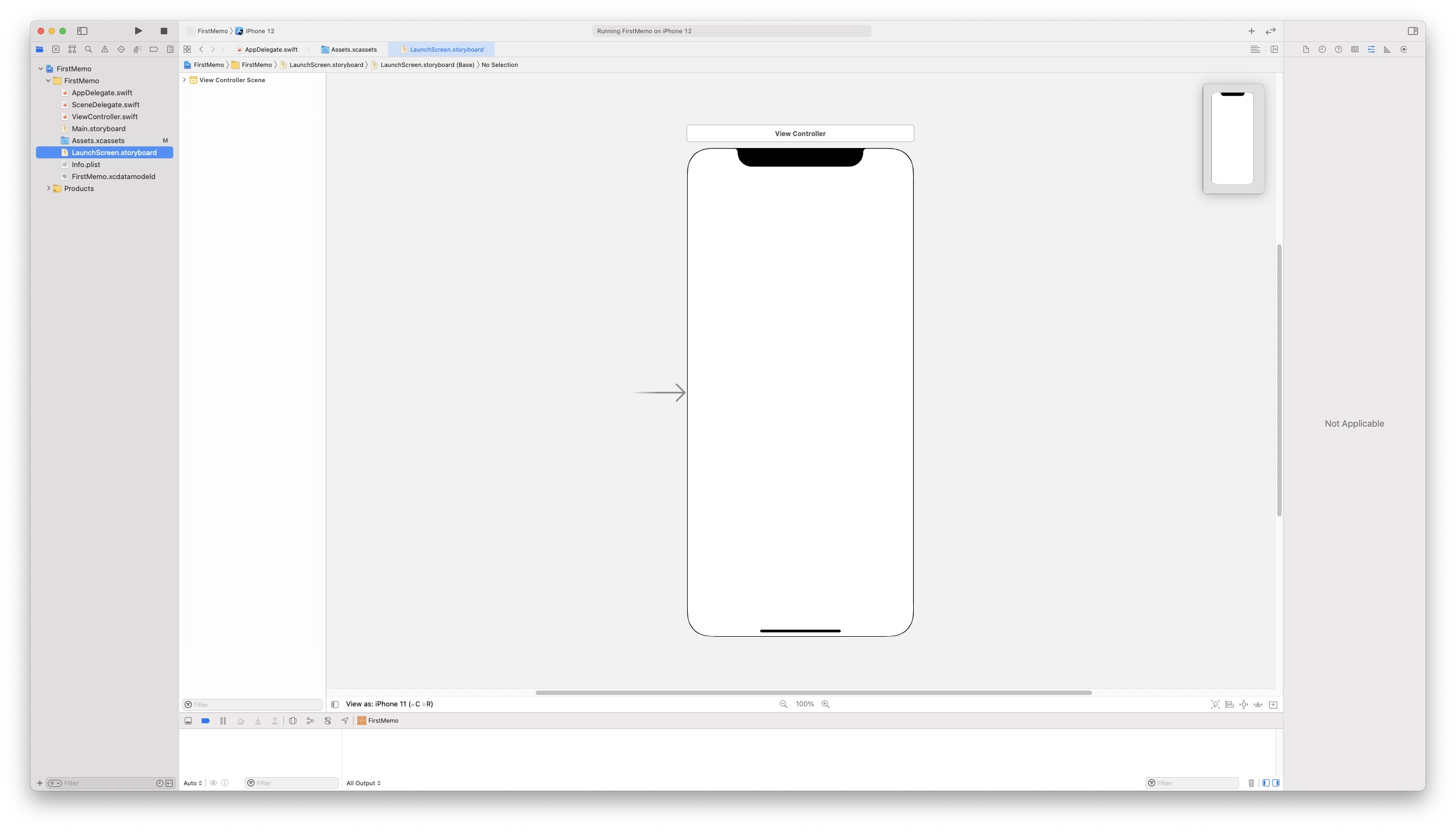 이후 Navigator(네비게이터)에서 LaunchScreen.storyboard를 선택한다.