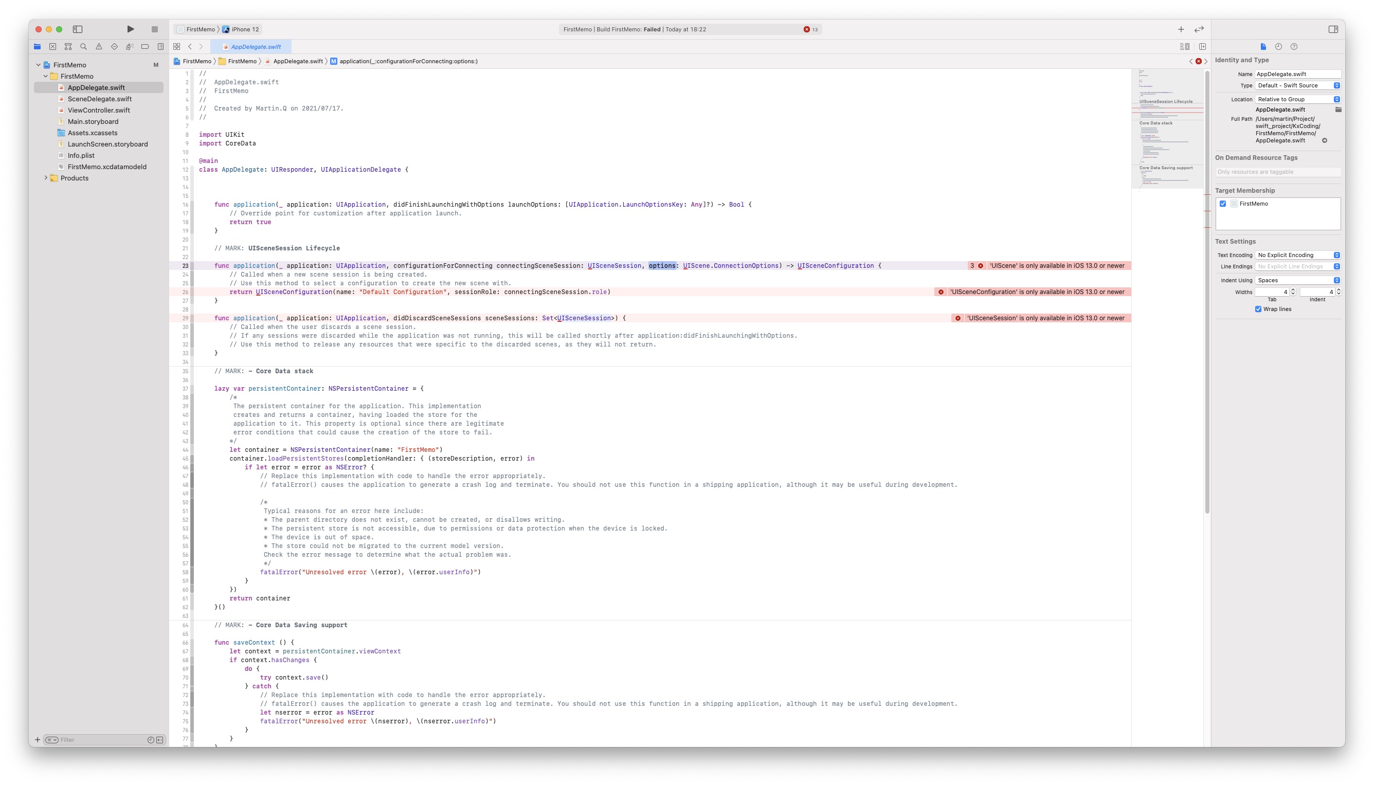 AppDelegate.swift와 SceneDelegate.swift 두개의 파일에서 발생하는 에러이다.