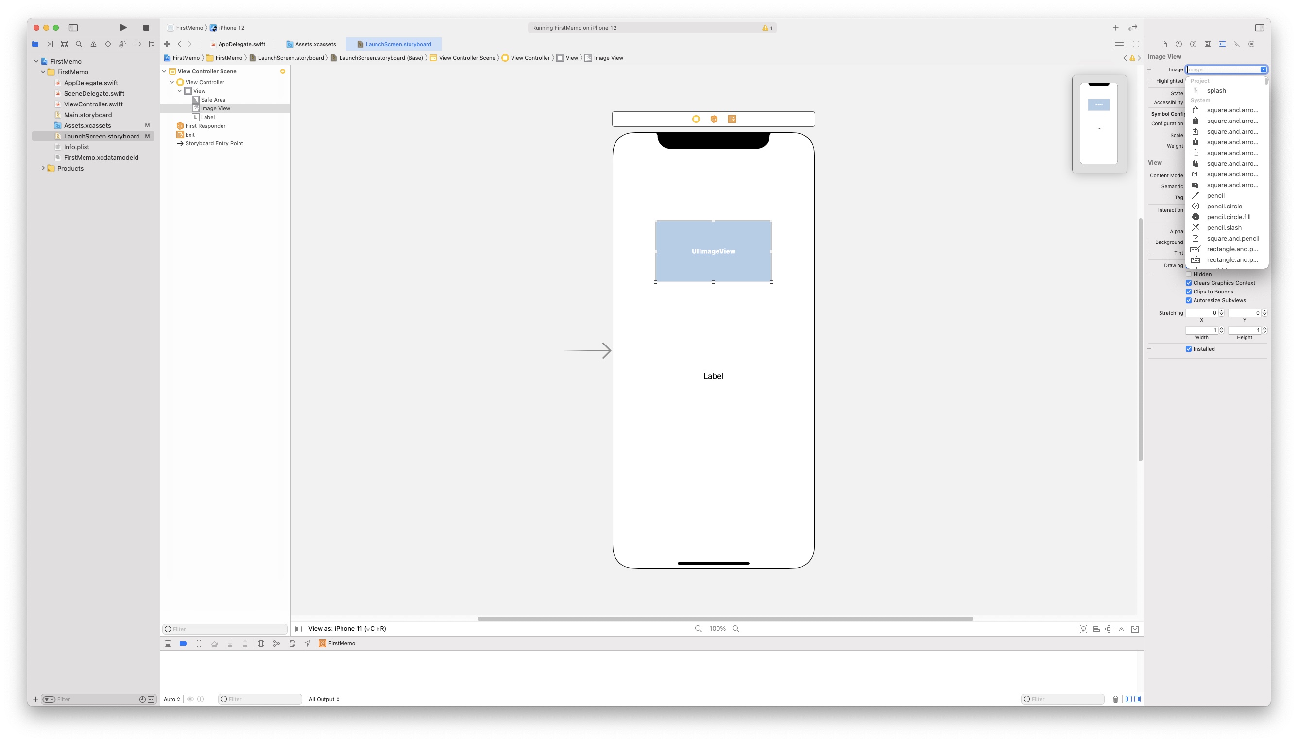 런치 스크린에 사용할 오브젝트는 두 가지로, 텍스트를 입력할 Label과 이미지를 출력할 Image View이다.