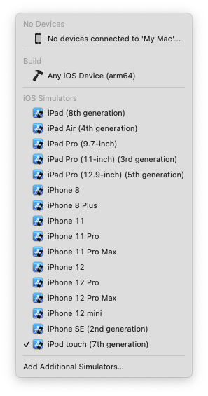 Xcode 화면에서 좌측 상단의 해당 부분을 선택하면