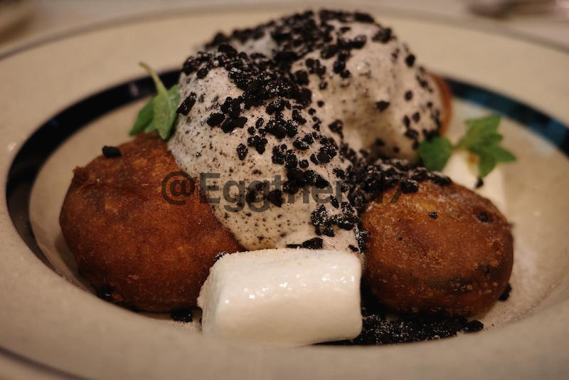 살짝 녹은 마쉬멜로우, 그리고 도넛 반죽에 쌓여 튀겨진 오레오다.