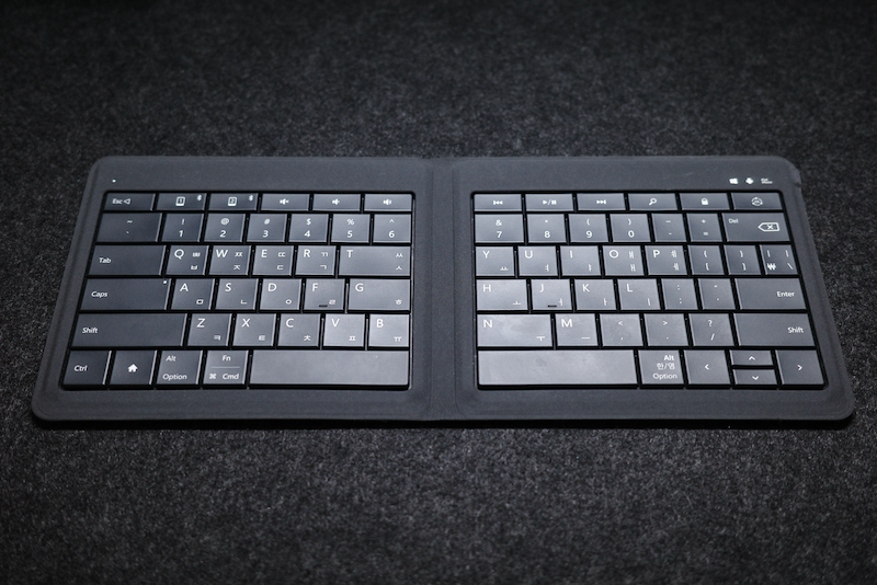 폴더블 키보드이기 때문에 가운데를 중심으로 자판이 나뉘어있다.