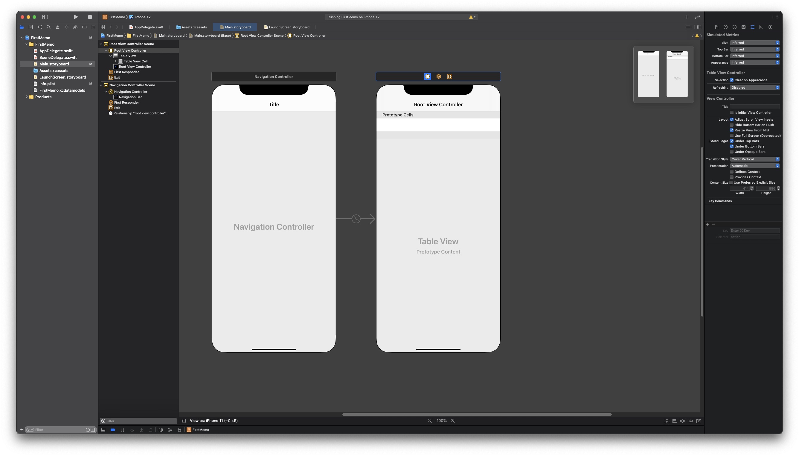 따라서 목록을 표시할 수 있는 Table View Controller가 우측에 추가되어 있는 것을 확인 할 수 있다.