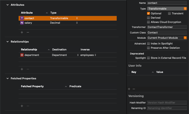 이제 작성한 transformer를 Coredata에서 사용할 수 있도록 설정해 줘야한다.