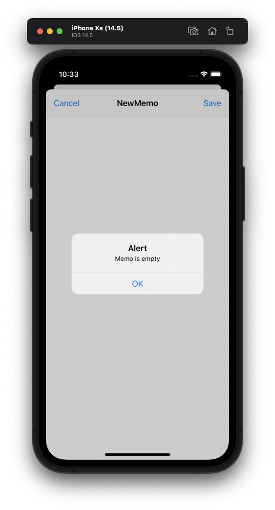이후 addAction 메소드로 버튼을 전달해 추가하면 다음과 같이 바뀐 alert를 만날 수 있다.
