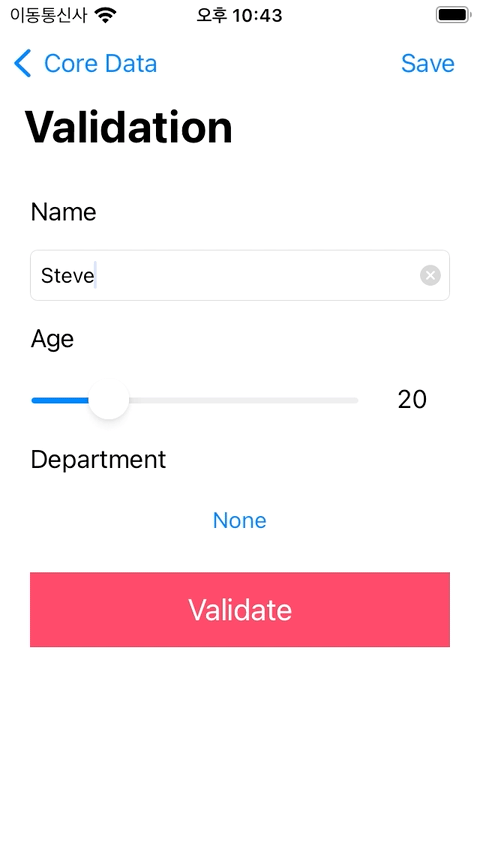 NSManagedObject를 사용해 검증코드를 구현하는 방식으로 구현한다.