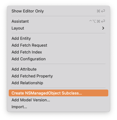 Editor > Create NSManagedObject Subclass를 선택해