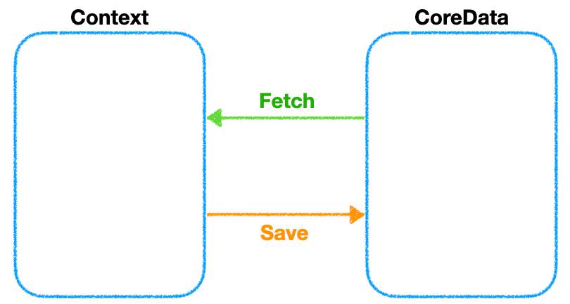 CoreData의 내용을 Context에 불러온 뒤, 변경된 Context의 내용을 다시 CoreData에 반영해야 한다.