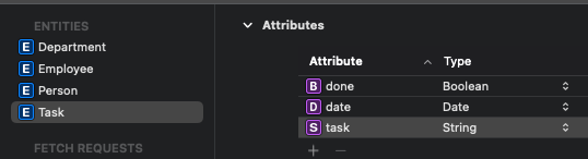 NSBatchUpdateRequest 생성자를 사용하고, 파라미터로 새로 생성한 Entity 이름인 Task를 전달한다.