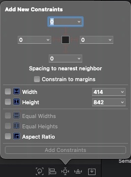 이후엔 사이즈를 sheet에 맞게 늘리고, 우측 하단의 add Constrain을 선택 후 상하좌우에 제약을 추가한다.
