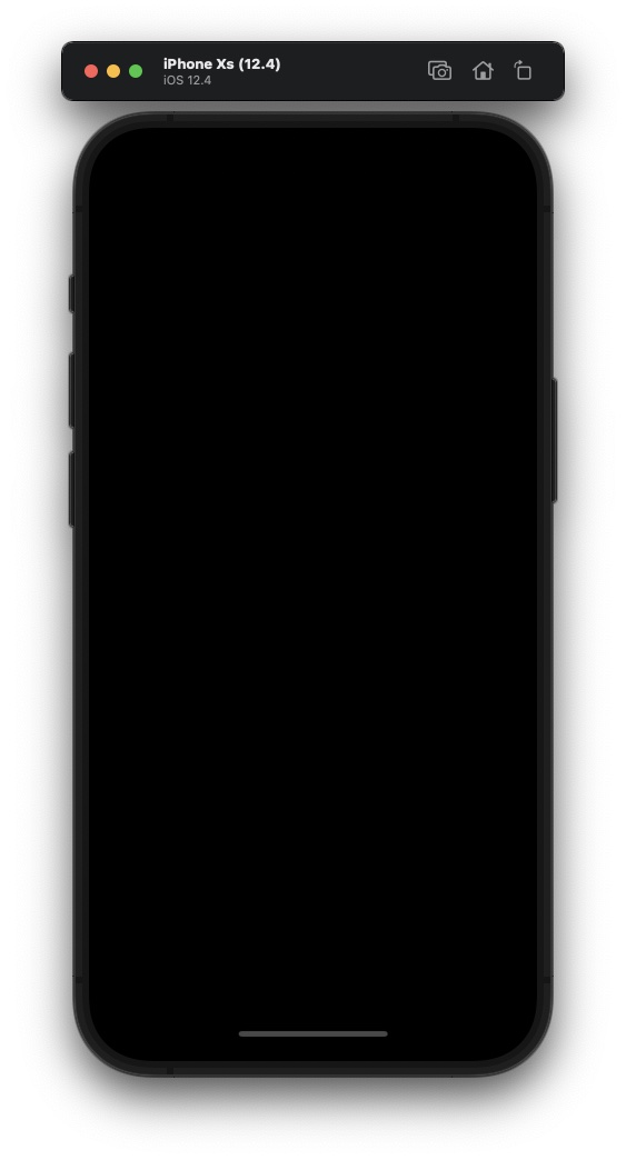 이번엔 앱이 동작하지 않고 검은 화면만 표시된다.