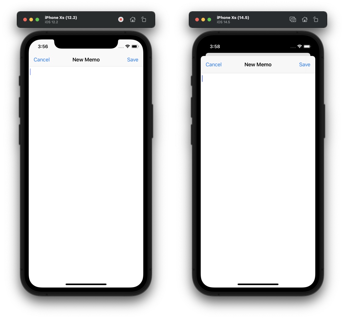 위에서 언급했듯 iOS13을 기준으로 Modally의 출력 방식이 FullScreen과 Sheet 두 가지 방식으로 나뉜다.