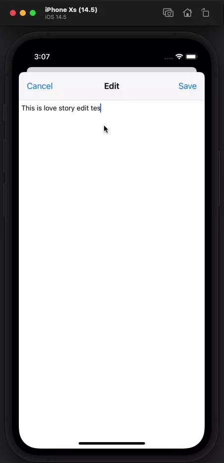 에디터는 Modal 방식으로 열리며 iOS 13 이상의 기기에서는 sheet 방식을 가지고 있다.