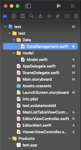 바로 앱 이름의 '.xdatamodeld' 파일이 DB이자 CoreData 파일이다.