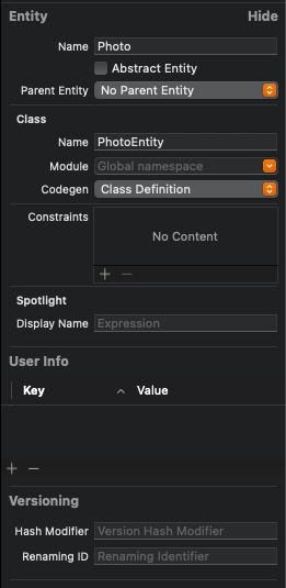 해당 파일의 Photo Entity를 확인해 보면 다른 Entity와는 다르게 Value Expression이 비어있는 것을 확인할 수 있다.