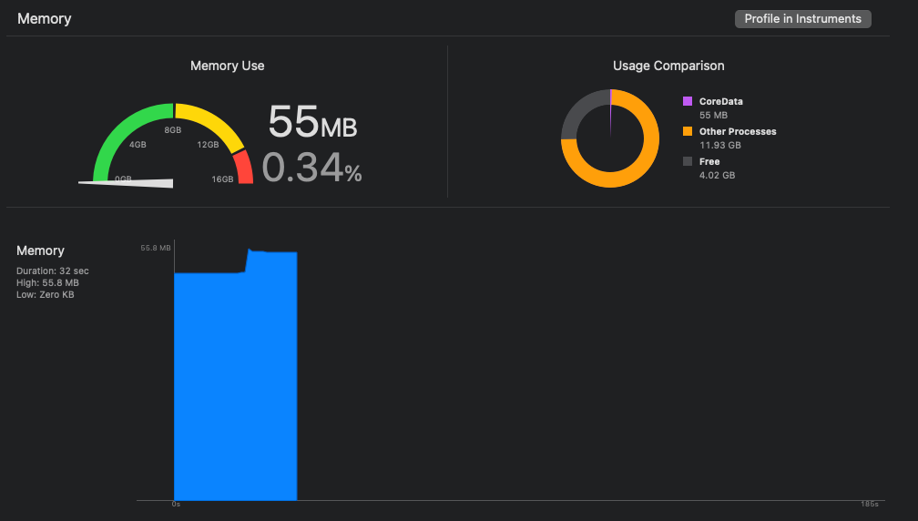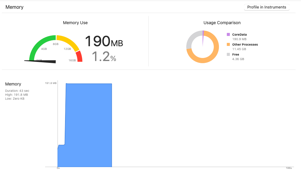 문제가 됐던 Migration Scene에 진입해도 이전의 190MB가 아닌 50MB 수준으로 효율적으로 사용하고 있는 것을 확인할 수 있다.