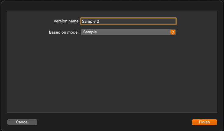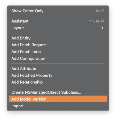 dataModel 파일을 선택하고 'Editor > add Model Version'