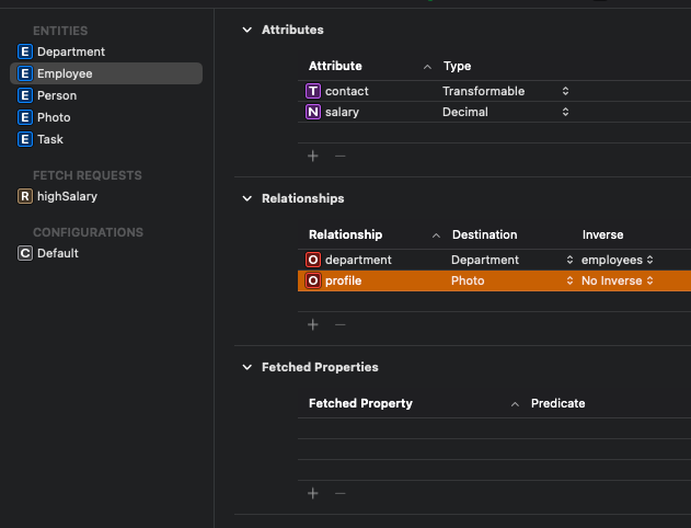 이를 Employee에 Relationship으로 연결하는 방식으로 변경해 본다.